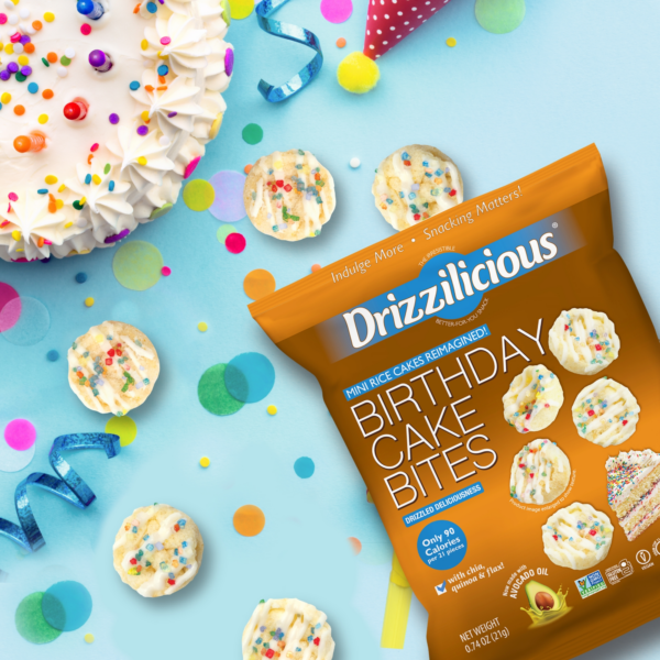 Our Drizzilicious Birthday Cake bites are mini rice cakes reimagined!
